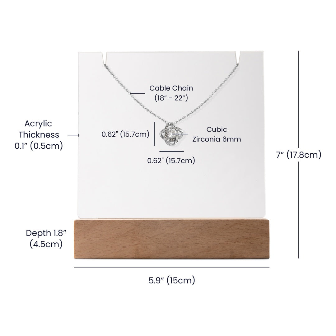 Celebrate your love and appreciation with our elegant Keepsake Acrylic Bundle, featuring a stunning Square Acrylic and the beautiful Love Knot Necklace. Your personalized design is showcased on crystal-clear acrylic, making this set a striking focal point in any space. Paired with the charming Love Knot Necklace, this bundle is the perfect gift for anniversaries, birthdays, or any special occasion when you want to make a lasting impression.